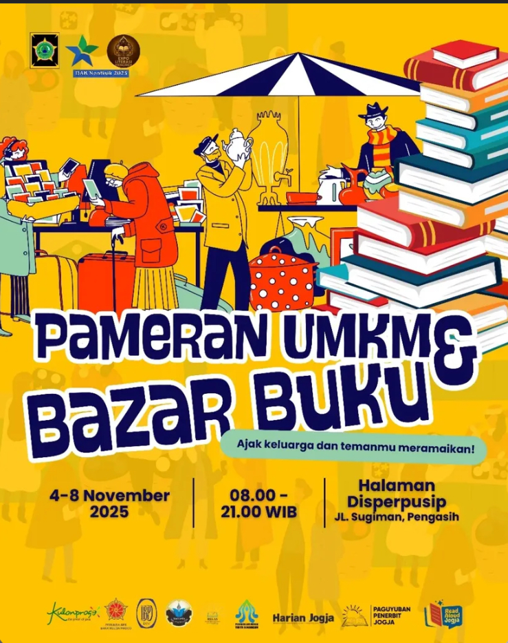 Hai kalian yang pecinta buku kali ini ada informasi menarik nihh, bazar buku dan pameran umkm akan hadir di halaman diperpusip Kulon Progo