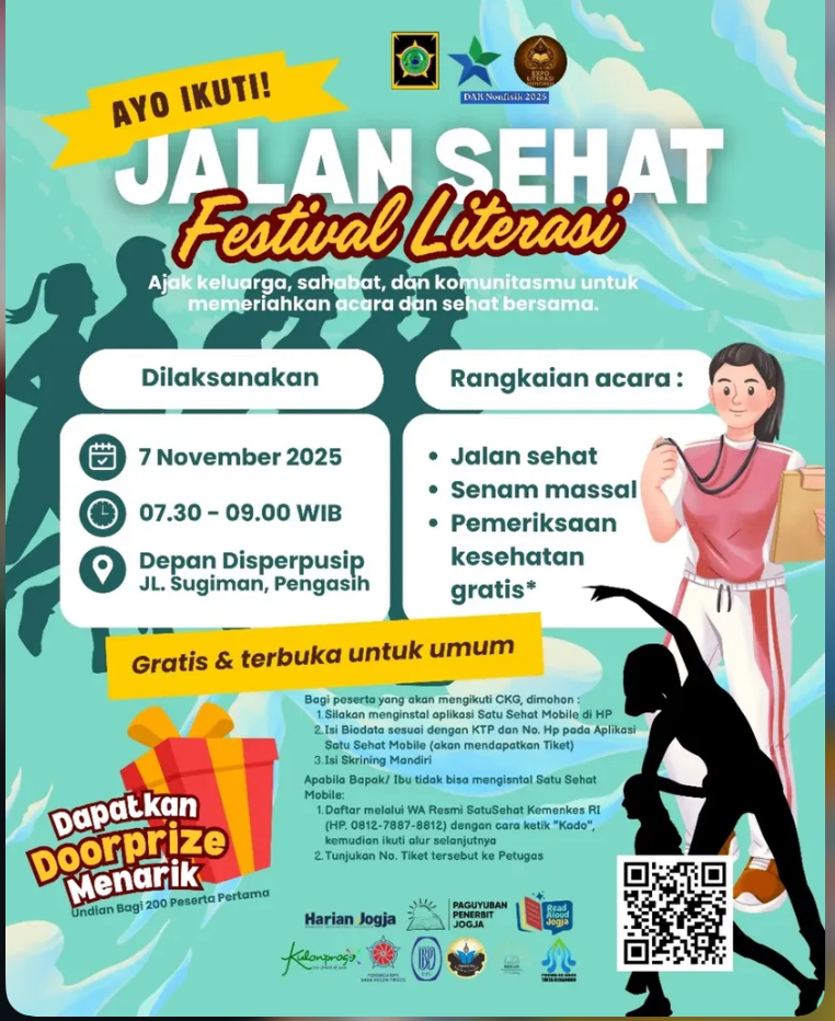 Hallo kami informasikan dalam acara festival literasi akan diadakan acara jalan sehat yang terbuka untuk umum, infomasi silahkan cek di brosur