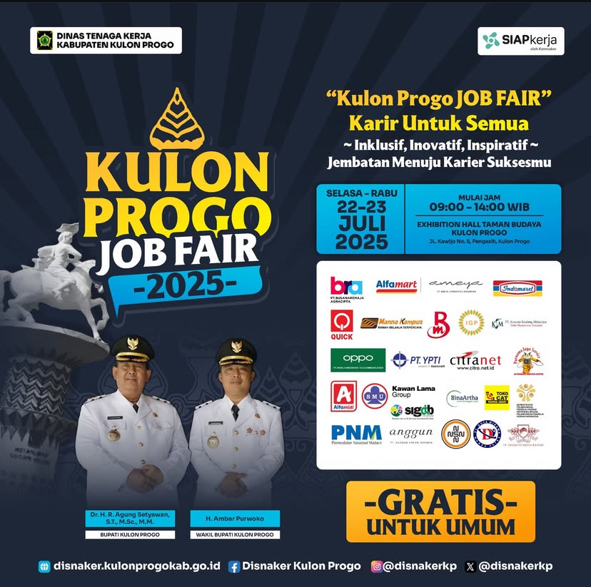 Hallo pejuang pencari kerja berikut informasi job fair kulon progo. Jangan lupa siapkan cv terbaikmu