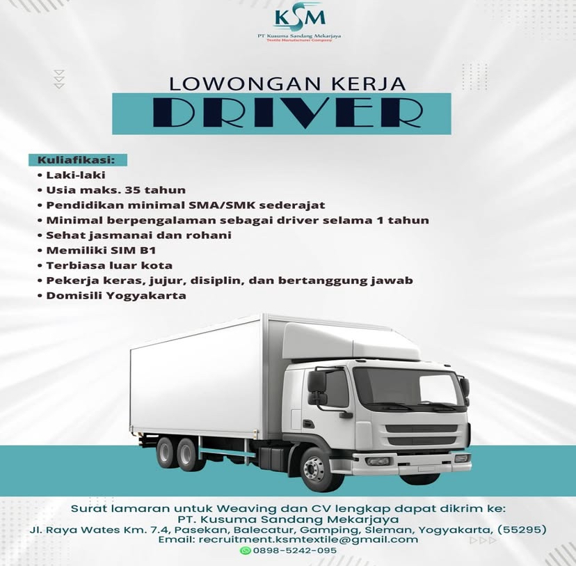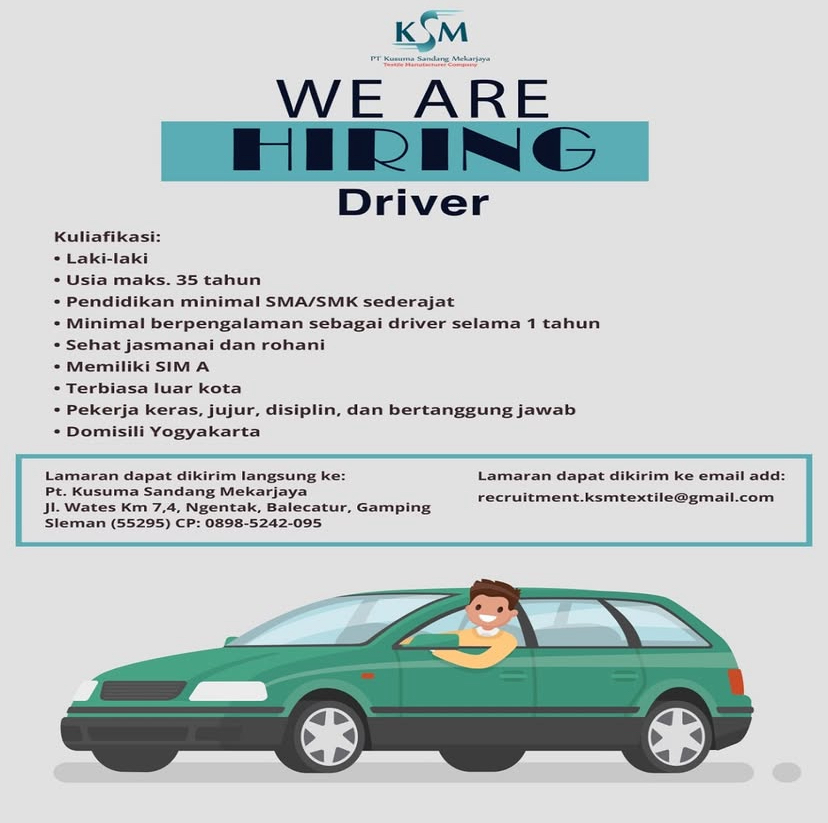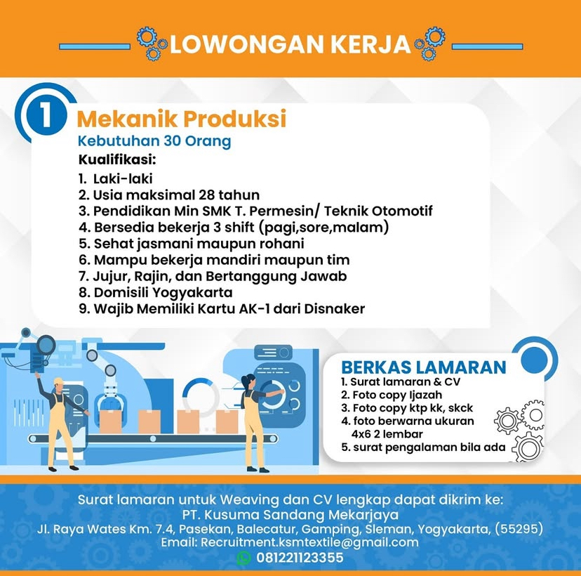 Berikut kami informasikan lowongan pekerjaan posisi :
