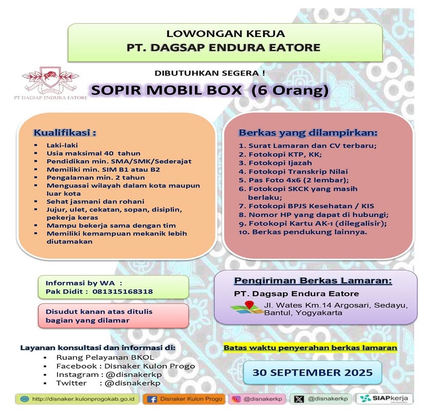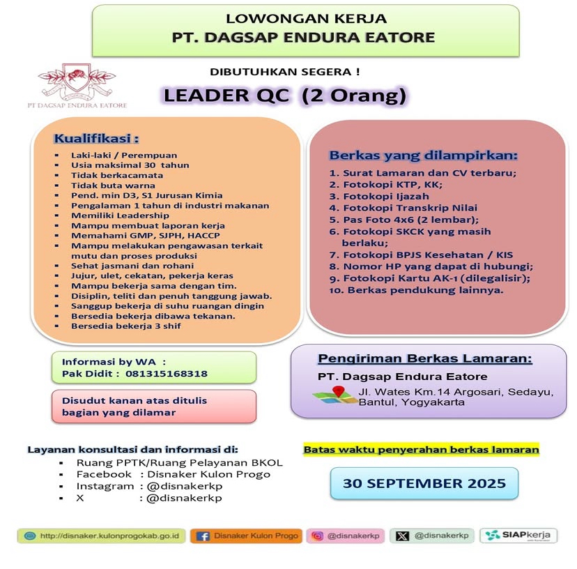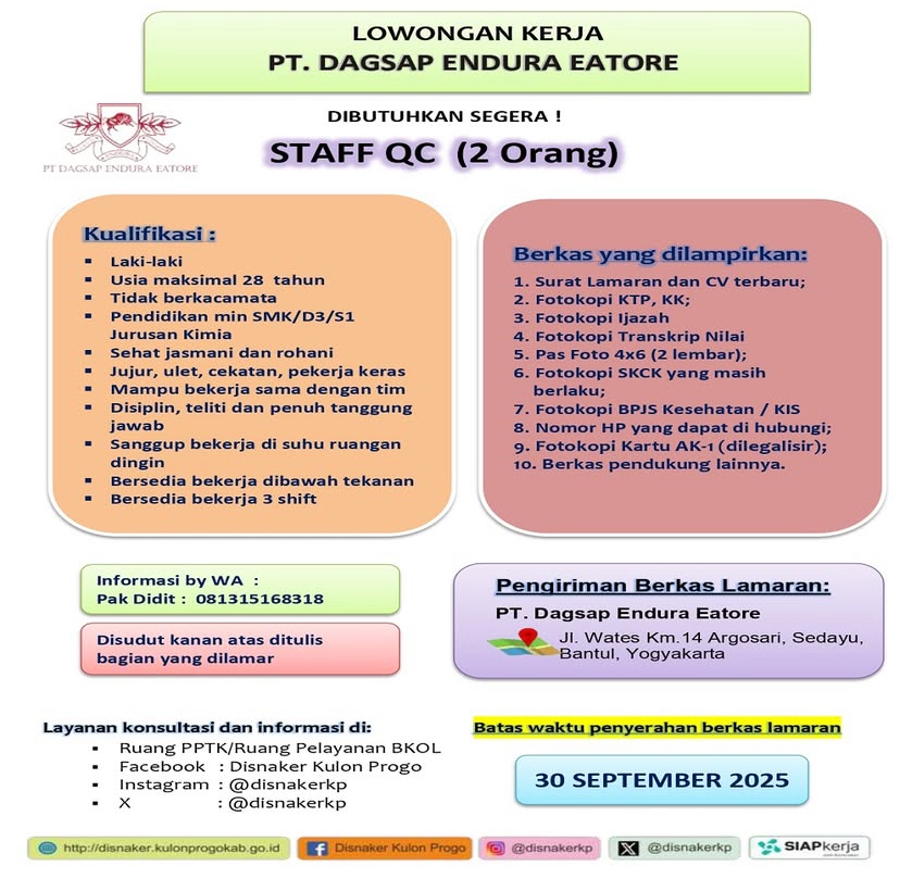 Berikut kami informasikan lowongan pekerjaan posisi: